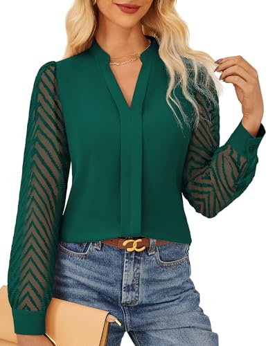 GRACE KARIN Femme Oversize Chemise Business Élégant Haut Dentelle Manches Transparentes Blouse Loisirs Vert XXL