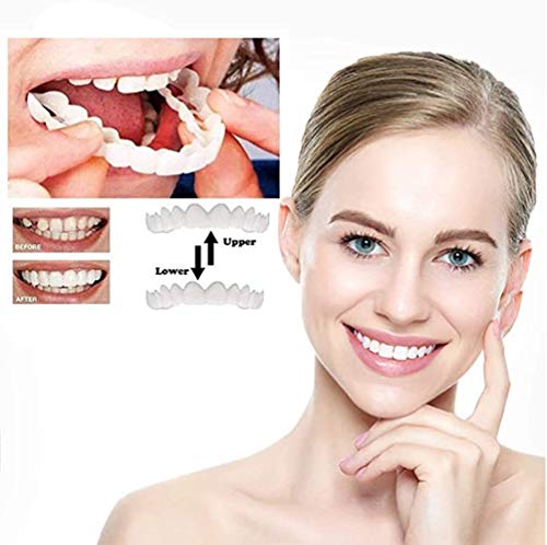 Générique Prothèses Dentaires Cosmétiques Facette Silicone Dentier Haut Et Bas Dentier pour Homme Et Femme Provisoire Facette Amovible Fausse Dents,2pcs