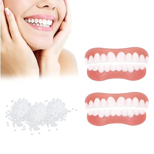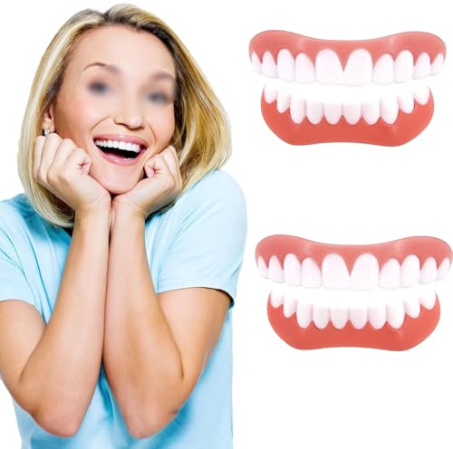 YAIUNHIQ 2 Pairs-Immédiat Prothèses Dentaires Cosmétiques Silicone Dentier Haut Et Bas Sourire Parfait, pour Homme Et Femme Amovible Naturel Fausse Dents Provisoire Facette