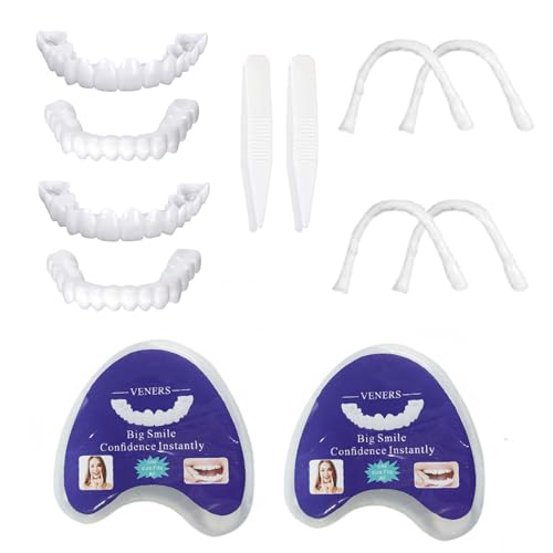Flipped Warmth 2 Paires Facette Dentaire Dentier Sourire Parfait, Dent Provisoire Fausse Dent Dentier Amovible Haut Et Bas, Prothese Dentaire, Dentier Provisoire pour Hommes Et Femmes
