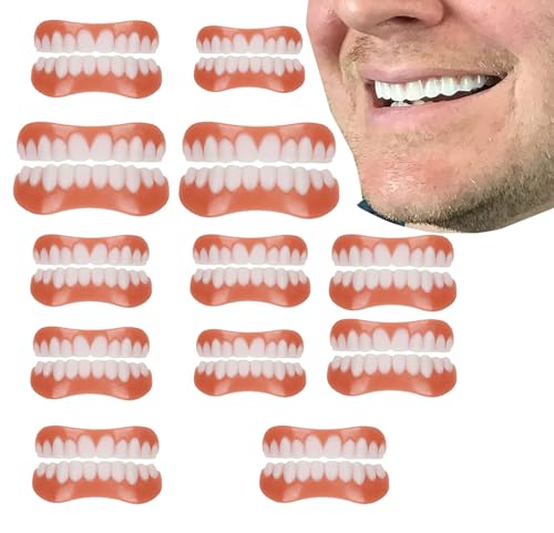 Générique Prothèses Dentaires Cosmétiques Facette Silicone Dentier Haut Et Bas Dentier pour Homme Et Femme Provisoire Facette Amovible Fausse Dents,10pcs