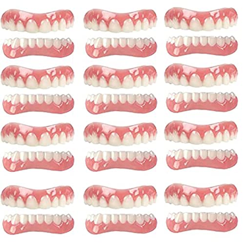 PROPFE Immédiat Prothèses Dentaires Cosmétiques Silicone Dentier Haut Et Bas Sourire Dentier pour Homme Et Femme Amovible Naturel Fausse Dents Provisoire Facette,12 Pairs