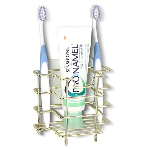 Linkidea Support Mural/Support de Brosse à Dents de comptoir pour Douche, Support de Dentifrice en Acier Inoxydable, Organiseur à 3 Fentes, Compatible avec Colgate Extra Clean, Oral-B CrossAction