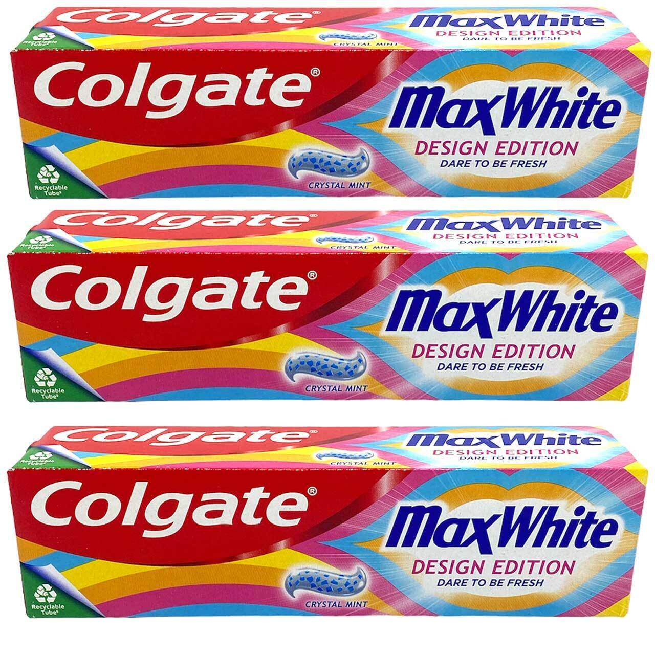 3x Colgate Max Blanc Design Édition Crystal Dentifrice Menthe (3x 75ml)