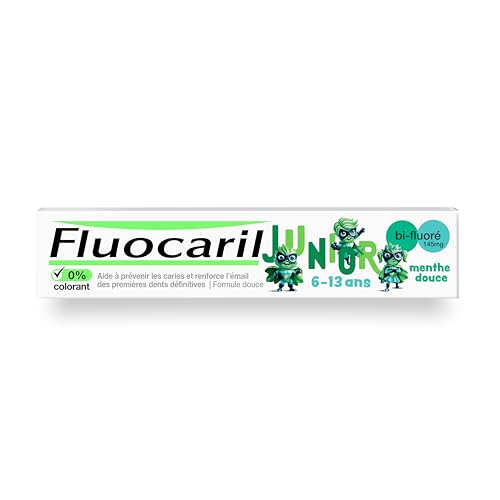FLUOCARIL - Dentifrice Junior 6-13 ans Anti-Caries Bi-fluoré 145mg - Arôme/Goût Menthe Douce - Aide à prévenir les caries et renforce l'émail des premières dents définitives (tube 75 ml)