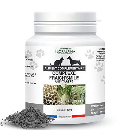 Poudre fraich'smile (Anti-tartre) 100g pour Chien et Chat - Aliment complémentaire pour Une hygiène Dentaire optimale, avec algue Brune et Propolis pour réduire Le tartre et la Plaque Dentaire
