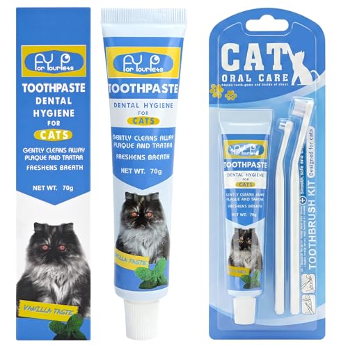 Henjunu Dentifrice chat avec 2 brosses à dents pour chiens et chats, élimine la plaque et le tartre, une haleine fraîche et bon pour les dents
