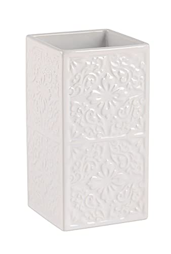 WENKO Gobelet Barock céramique - Porte-Brosse à Dents pour la Brosse à Dents et Le Dentifrice, Céramique, 7.5 x 10.5 x 7.5 cm, Blanc