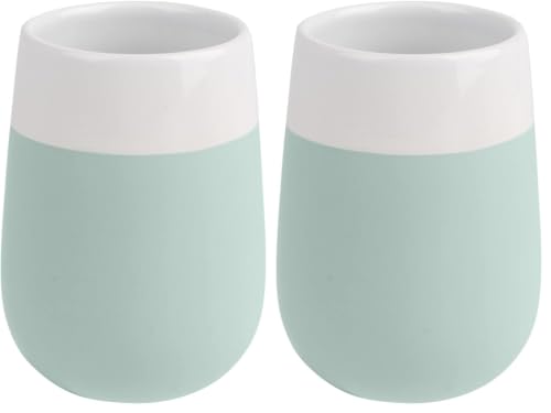WENKO Gobelet Malta Menthe/Blanc céramique - Porte-Brosse à Dents pour la Brosse à Dents et Le Dentifrice, Céramique, 8 x 11 x 8 cm, Vert Menthe (Lot de 2)