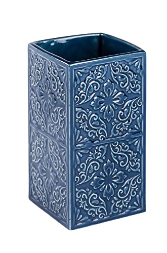 WENKO Gobelet Cordoba Bleu foncé céramique - Porte-Brosse à Dents pour la Brosse à Dents et Le Dentifrice, Céramique, 6.5 x 12 x 6.5 cm, Bleu
