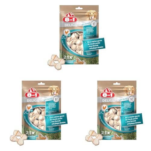 8 in 1 Delights Dental XS - Os de bœuf à Mâcher pour Chien de Petite Taille - Enrichi en minéraux - Viande à cœur - Prodental Limite le Tartre - Sans céréales Colorant Arôme Artificiel - 21 pièces