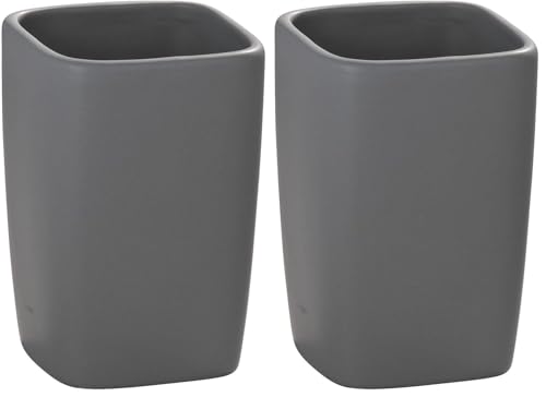 WENKO Gobelet Faro Gris céramique - Porte-Brosse à Dents pour la Brosse à Dents et Le Dentifrice, Céramique, 7.5 x 10.7 x 7.5 cm, Gris (Lot de 2)