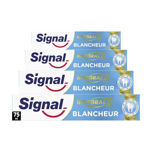 SIGNAL - Dentifrice Blancheur integral 8 blancheur effet prébiotique - Protection Complète 3x plus efficace -96% d'ingrédients d'origine naturelle (lot de 4x75ml)
