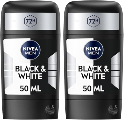 NIVEA MEN - Stick Masculin Black & White Original - Déodorant Homme 72H Anti-Transpirant Aisselles - Protection 5-en-1 Anti-Traces & Anti-Irritations - Derma Active - Tous Types De Peaux - 50 ml