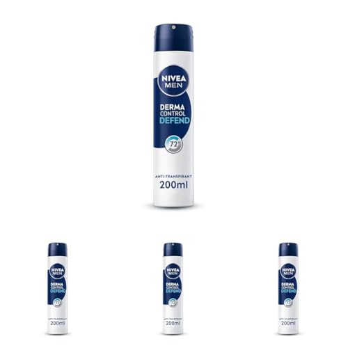 NIVEA MEN - Atomiseur Masculin Derma Control Defend - Déodorant Homme 72H Anti-Transpirant Aisselles - Acide Hyaluronique - Anti-Démangeaisons - 0% Alcool - Tous Types de Peaux - 200 ml (Lot de 4)