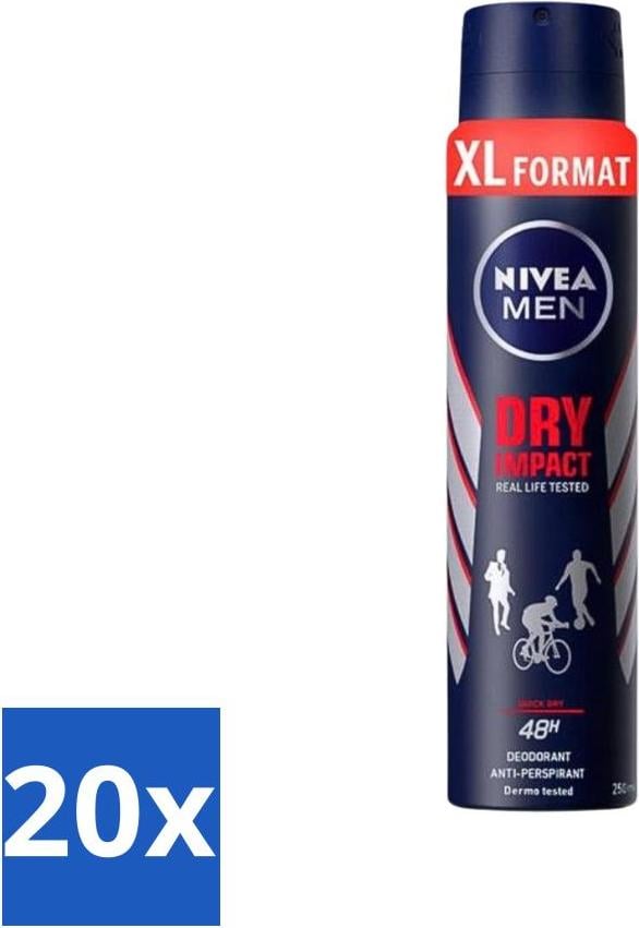Nivea - Déodorant spray - Homme - Dry Impact - efficacité 48h - 250 ml - pack avantage - 20 pièces