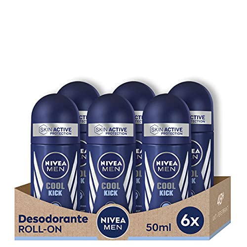 NIVEA MEN Cool Kick Roll-on Lot de 6 (6 x 50 ml) Déodorant pour homme avec un coup de fraîcheur, déodorant anti-transpirant pour le soin masculin