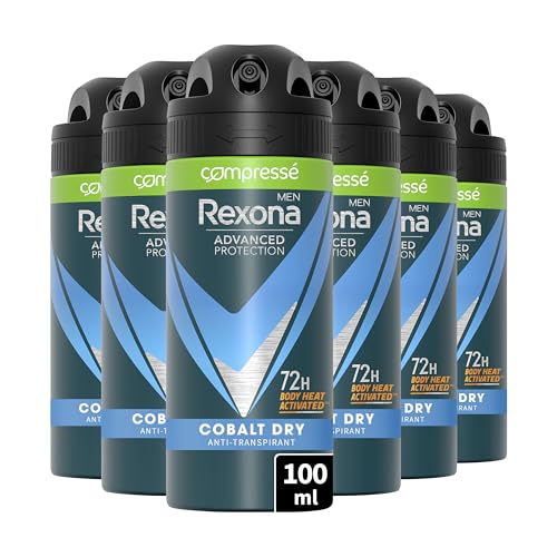 REXONA MEN - Déodorant Homme Cobalt Dry - Spray Compressé Anti-transpirant - Parfum Frais et Longue durée - Protection 72h (lot de 6x100ml)