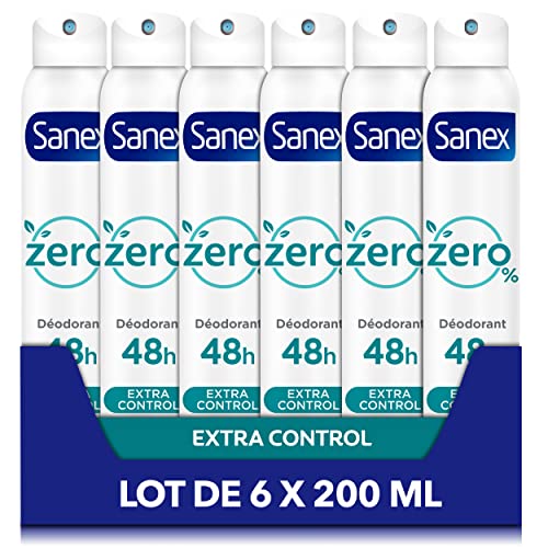 SANEX - Spray Deodorant 0% Extra Control - Deodorant Homme & Femme - Efficacite 48h - Sans Alcool, Sans Sels d'Aluminium - Lot de 6 x 200mL