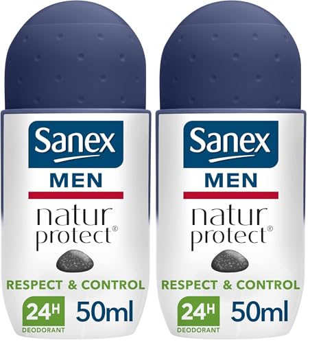 SANEX - Déodorant à Bille Men Natur Protect Respect & Control - Déodorant pour Homme à la Pierre d'Alun - Efficacité 24 h - 50 ml - (Lot de 2)