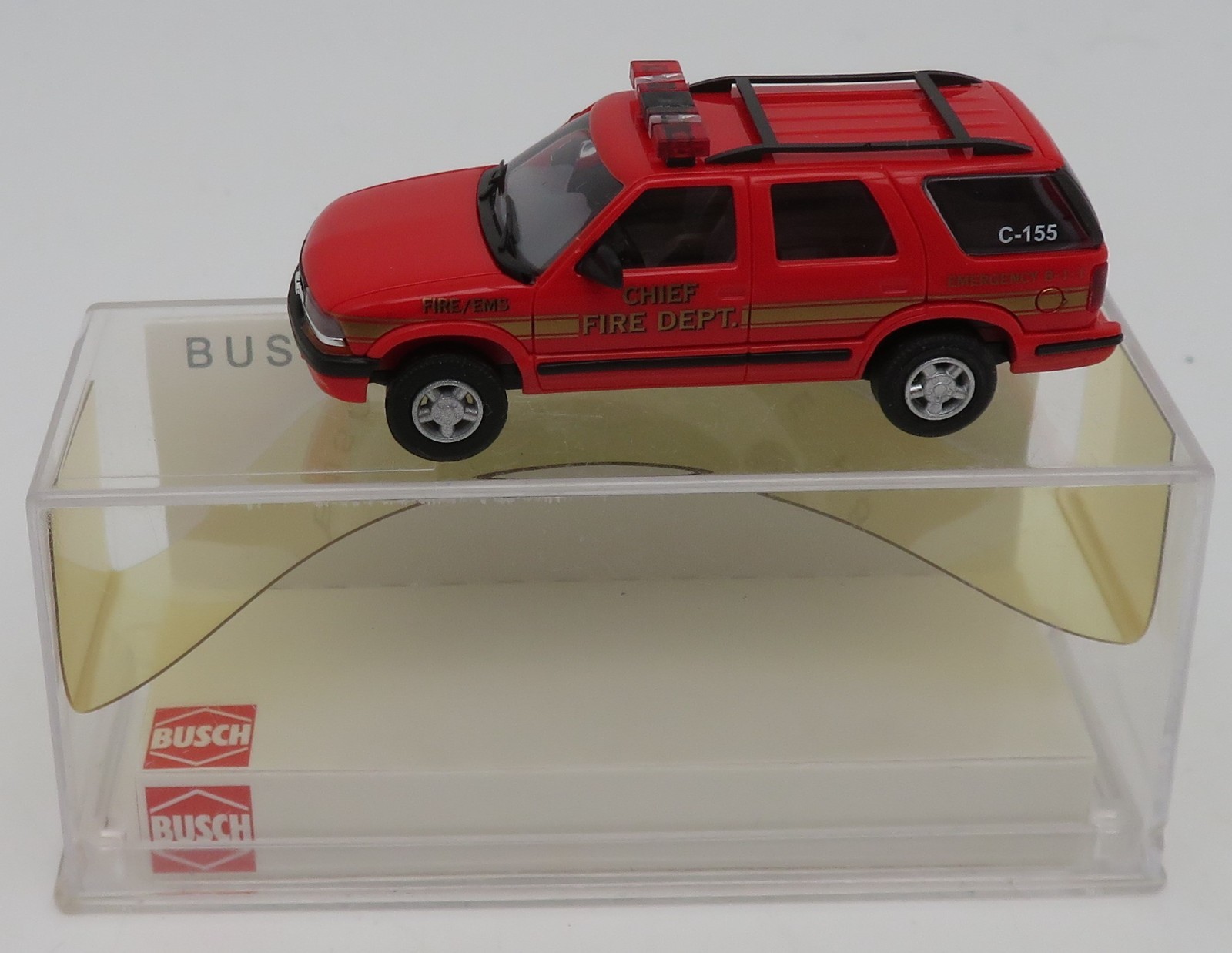 BUSCH HO 1/87 CHEVROLET BLAZER US EMS FIRE DEPT CHIEF C-155 STATION #46406 BOX