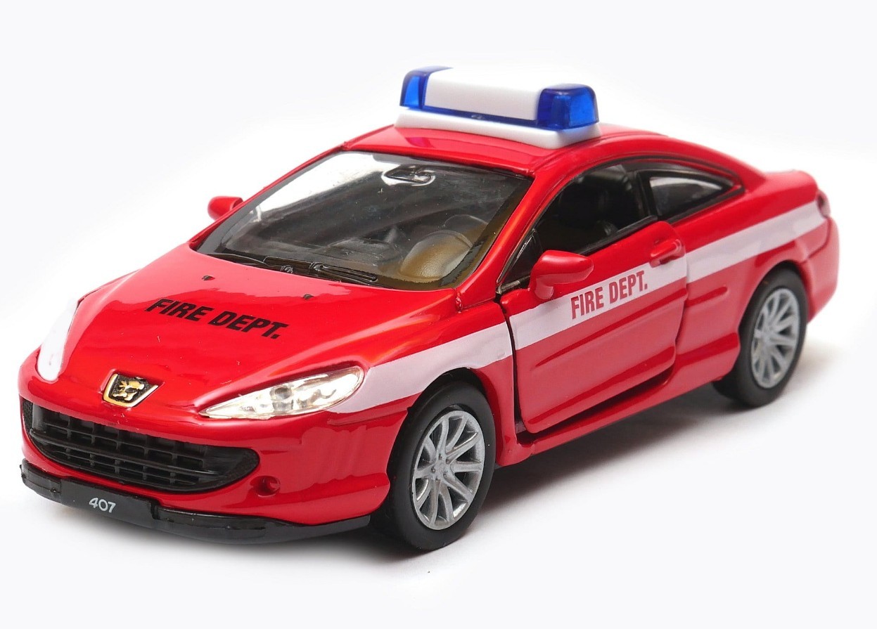 Voiture moulée sous pression Welly Peugeot 407 Coupe Fire Dept Red 1:34...