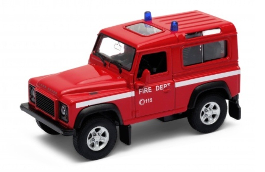 Welly Land Rover Defender Fire Dept Red 1:34 1:39 Scales 4.5Inch Diecast in Box