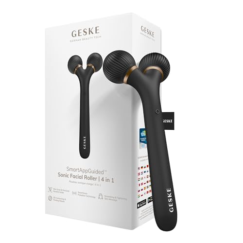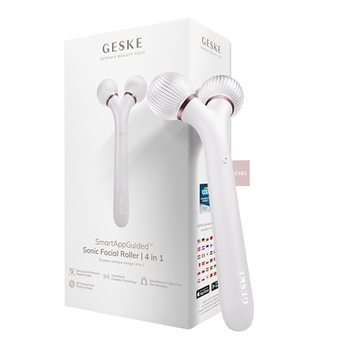 GESKE | Rouleau facial sonique SmartAppGuided™ | 4 in 1 | Derma Roller | Appareil pour le visage | Rouleau facial professionnel | Raffermit et redessine la peau du visage