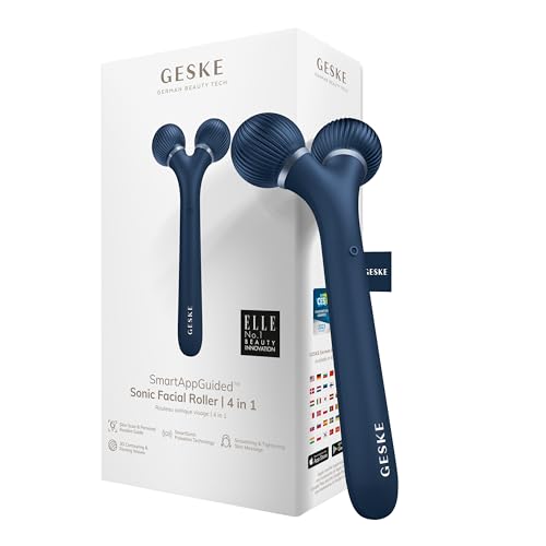 GESKE | Rouleau facial sonique SmartAppGuided™ | 4 in 1 | Derma Roller | Appareil pour le visage | Rouleau facial professionnel | Raffermit et redessine la peau du visage