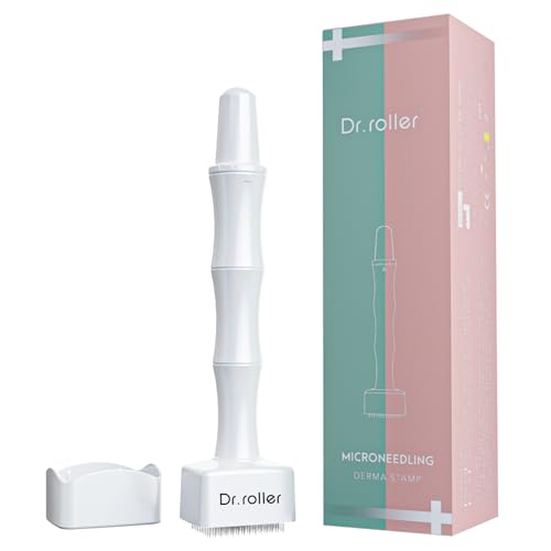 Dr.roller Derma Stamp 0-3mm Réglable, Microneedling Dermastamp Derma Roller Cheveux avec 140 Micro-aiguilles pour Cheveux, Barbe, Visage, Corps (Amélioration du Blanc)