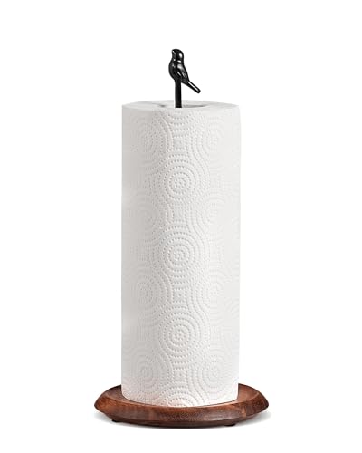 Porte Sopalin sur Pied Rustique | Support Essuie Tout en Bois et Métal Noir avec Oiseau | Dérouleur Sopalin pour Plan de Travail