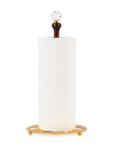 Porte Sopalin sur Pied Doré de Luxe | Support Essuie Tout avec Cristal & Poteau en Bois | Dérouleur Sopalin Moderne pour Plan de Travail