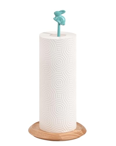 Porte Sopalin sur Pied Moderne | Support Essuie Tout en Bois avec Lapin Turquoise | Dérouleur Sopalin pour Plan de Travail, Cadeau de Pâques