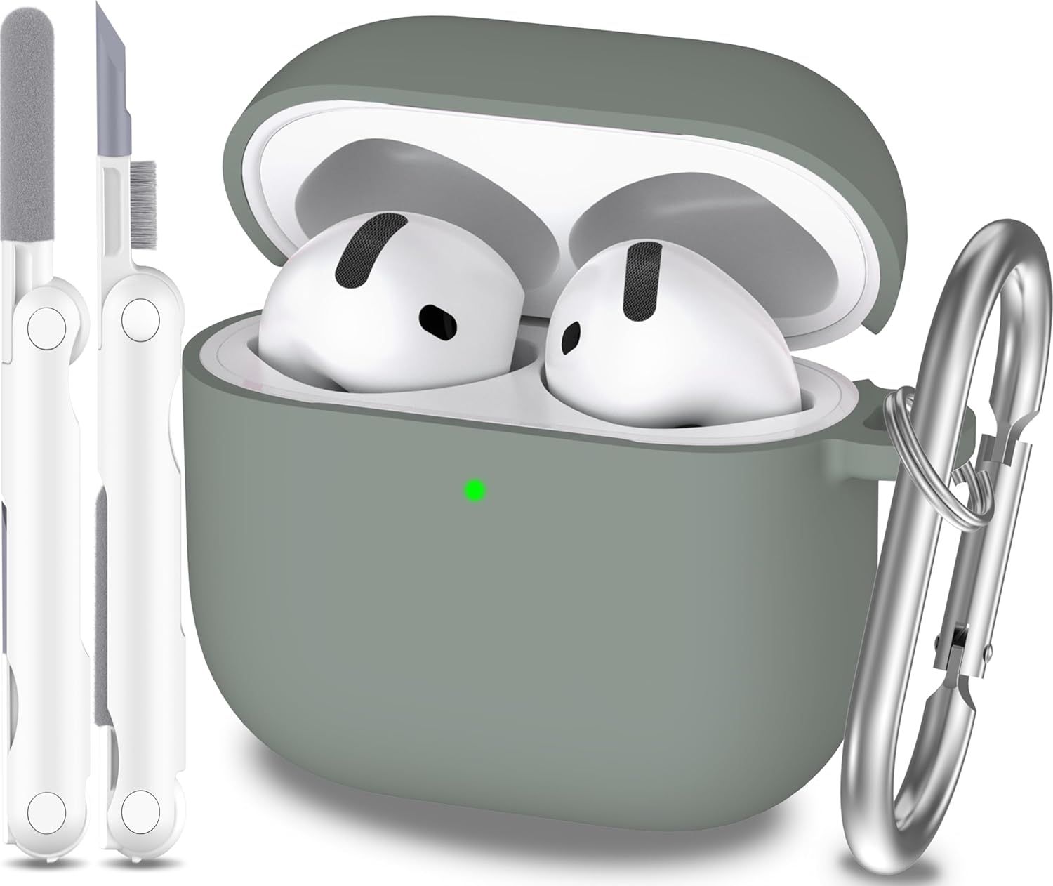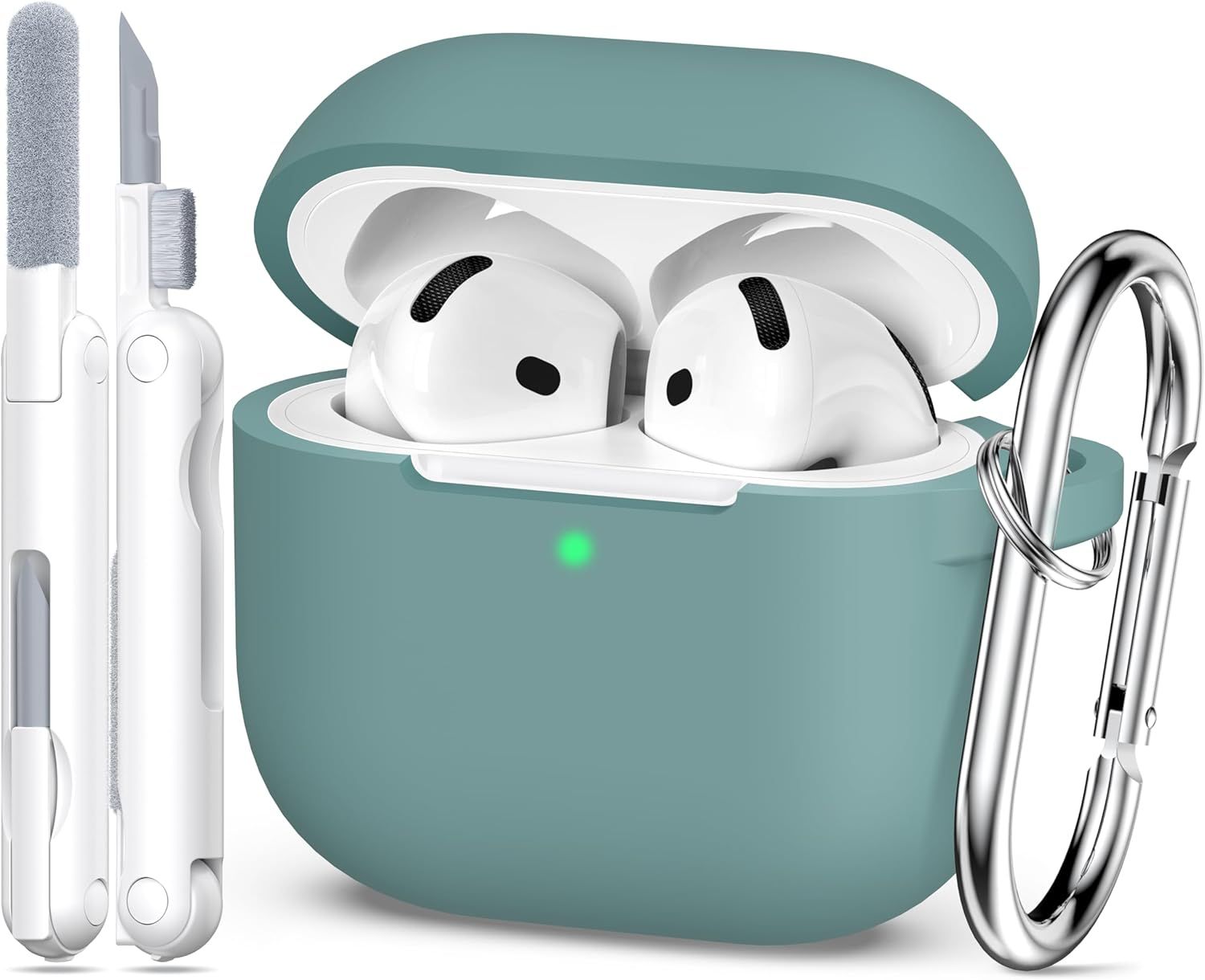 Compatible avec AirPods 4e génération Coque 2024, Silicone Souple de qualité Militaire, Absorption des Chocs, Compatible avec AirPods 4 Coque avec Porte-clés et kit de Nettoyage,Vert pin