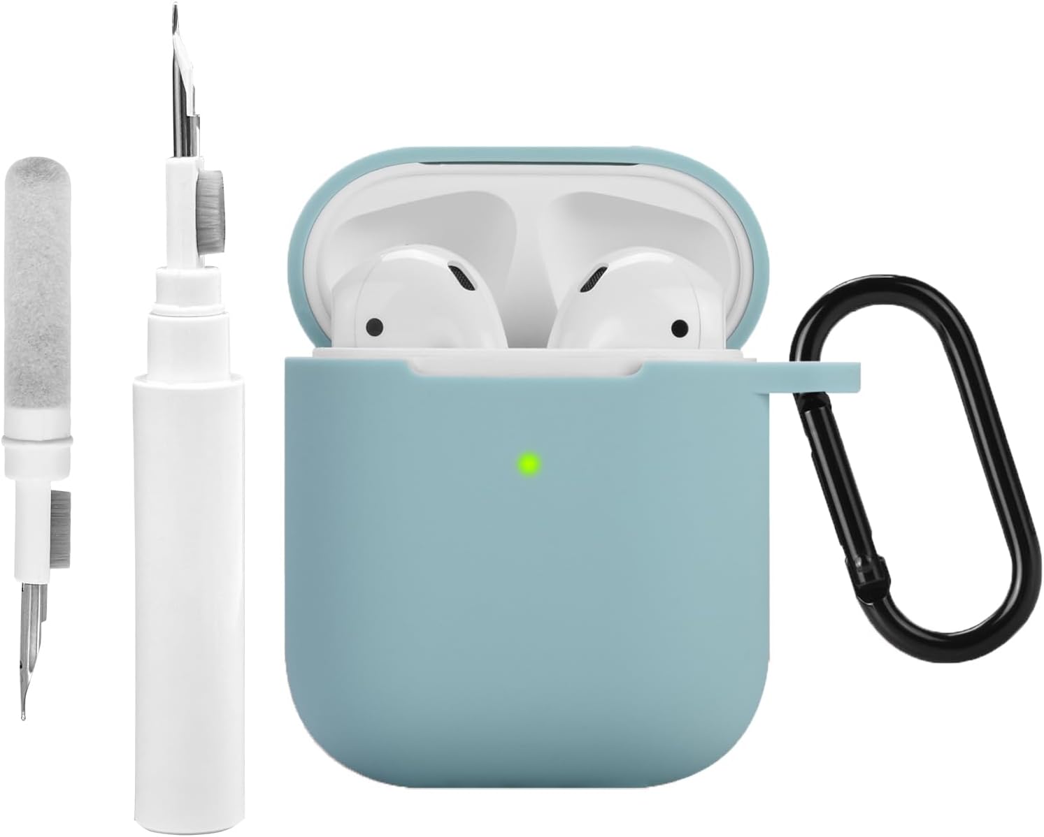 Étui en Silicone Compatible avec Les AirPods 2 1 avec kit de Nettoyage, étui de Protection Compatible avec Apple AirPods 2 avec Mousqueton, Housse Souple pour l'étui des Airpods 1 2 (Bleu Clair)