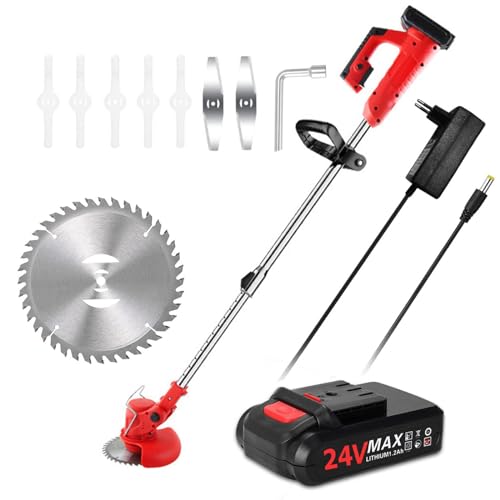 Débroussailleuse sans fil 24 V avec batterie à charge rapide pour jardin, pelouse, désherbant, arbres fleuris (1 batterie, Royaume-Uni)
