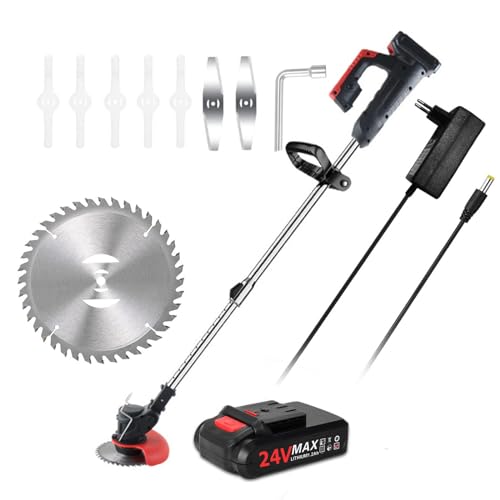 Débroussailleuse sans fil 24 V avec batterie à charge rapide pour jardin, pelouse, désherbant, arbres fleuris (1 batterie, US)