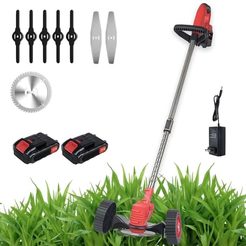 Désherbeur électrique sans fil 3 en 1 avec 3 types de lames, pour pelouse, jardin, cour, 2 batteries