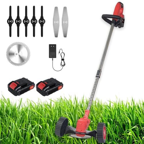 YQDDM Désherbeur électrique sans fil avec 3 types de lames et roues amovibles, débroussailleuse sans fil à piles pour pelouse, cour, jardin