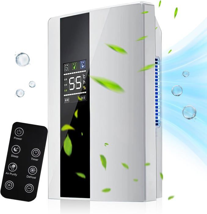 Déshumidificateur 12ljour, 1.5l deshumidificateur d air, purificateur d'air, séchoir à linge, écran led, minuterie 24h