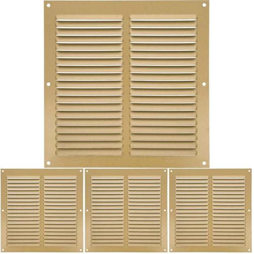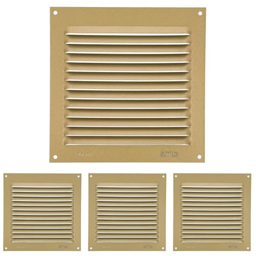 Amig - Grille de ventilation carrée en Aluminium | Grilles d'aération pour sortie d'air | Idéal pour plafond de cuisine et de salle de bain | Dimensions : 200 x 200 mm | Couleur: Dorée (Lot de 4)