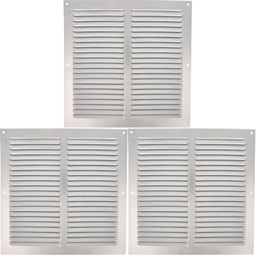 Amig - Grille de ventilation carrée en Aluminium | Grilles d'aération pour sortie d'air | Idéal pour plafond de cuisine et de salle de bain | Dimensions : 250 x 250 mm | Couleur: Argent (Lot de 3)