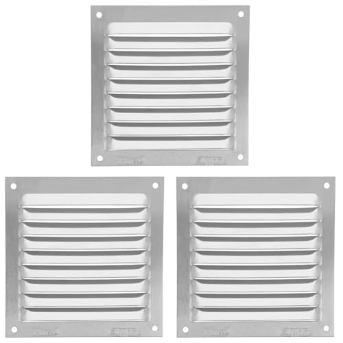 Amig - Grille de ventilation carrée en Aluminium | Grilles d'aération pour sortie d'air | Idéal pour plafond de cuisine et de salle de bain | Dimensions : 100 x 100 mm | Couleur: Argent (Lot de 3)