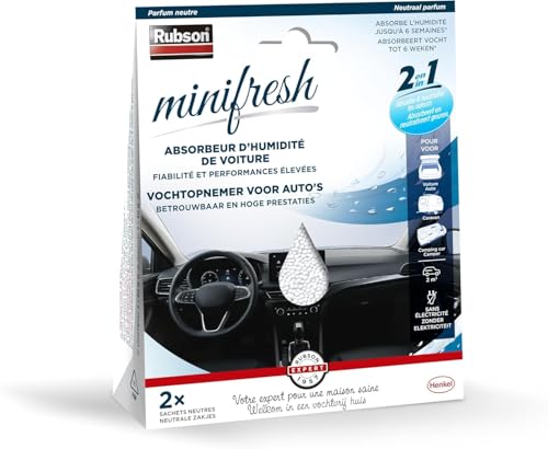 Rubson Minifresh Absorbeur d’Humidité Voiture Parfum Neutre (2 sachets) – Anti-humidité & anti-odeurs pour voiture, camping-car, caravane jusqu’à 2 m² – Déshumidificateur voiture sans électricité