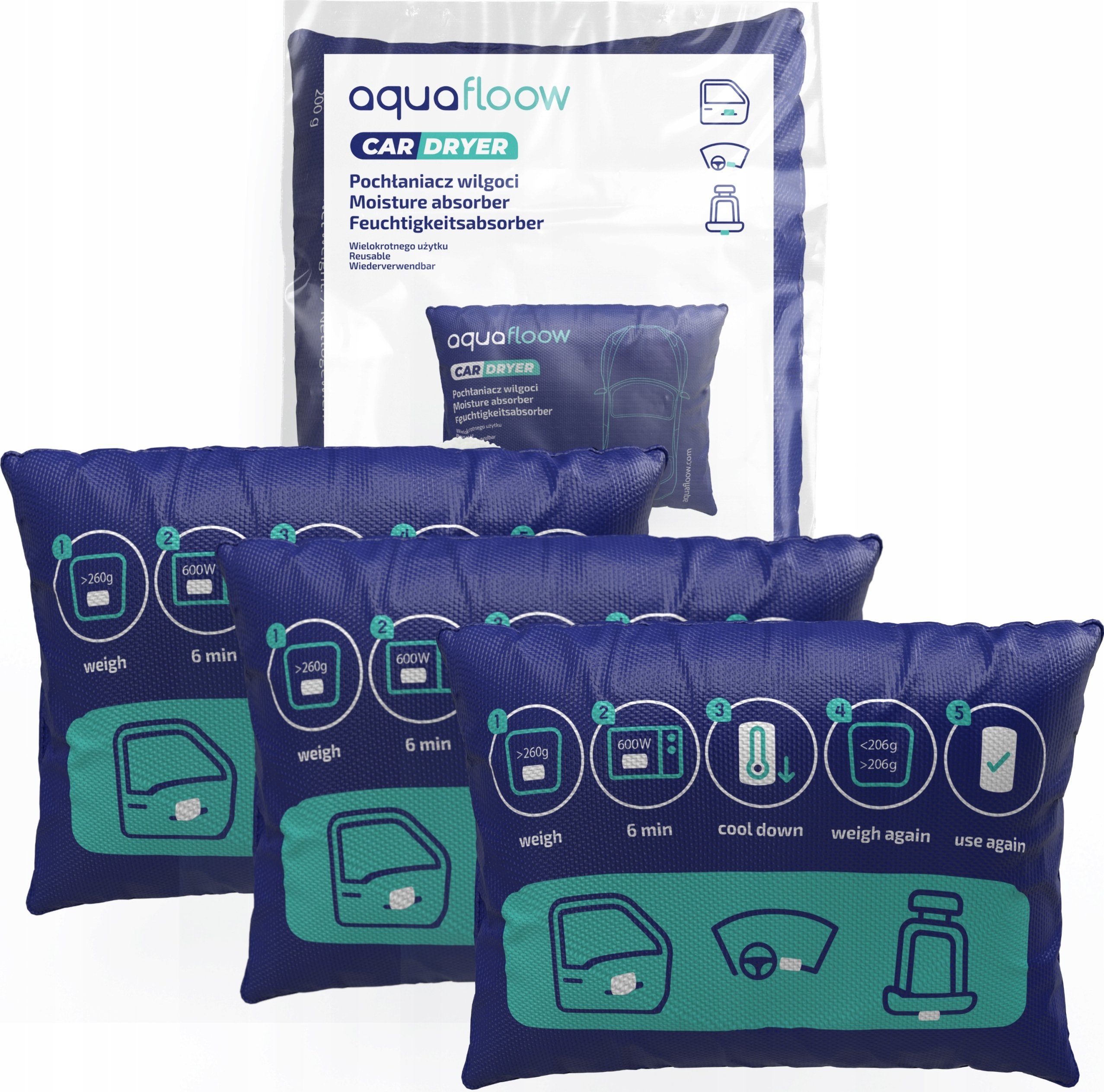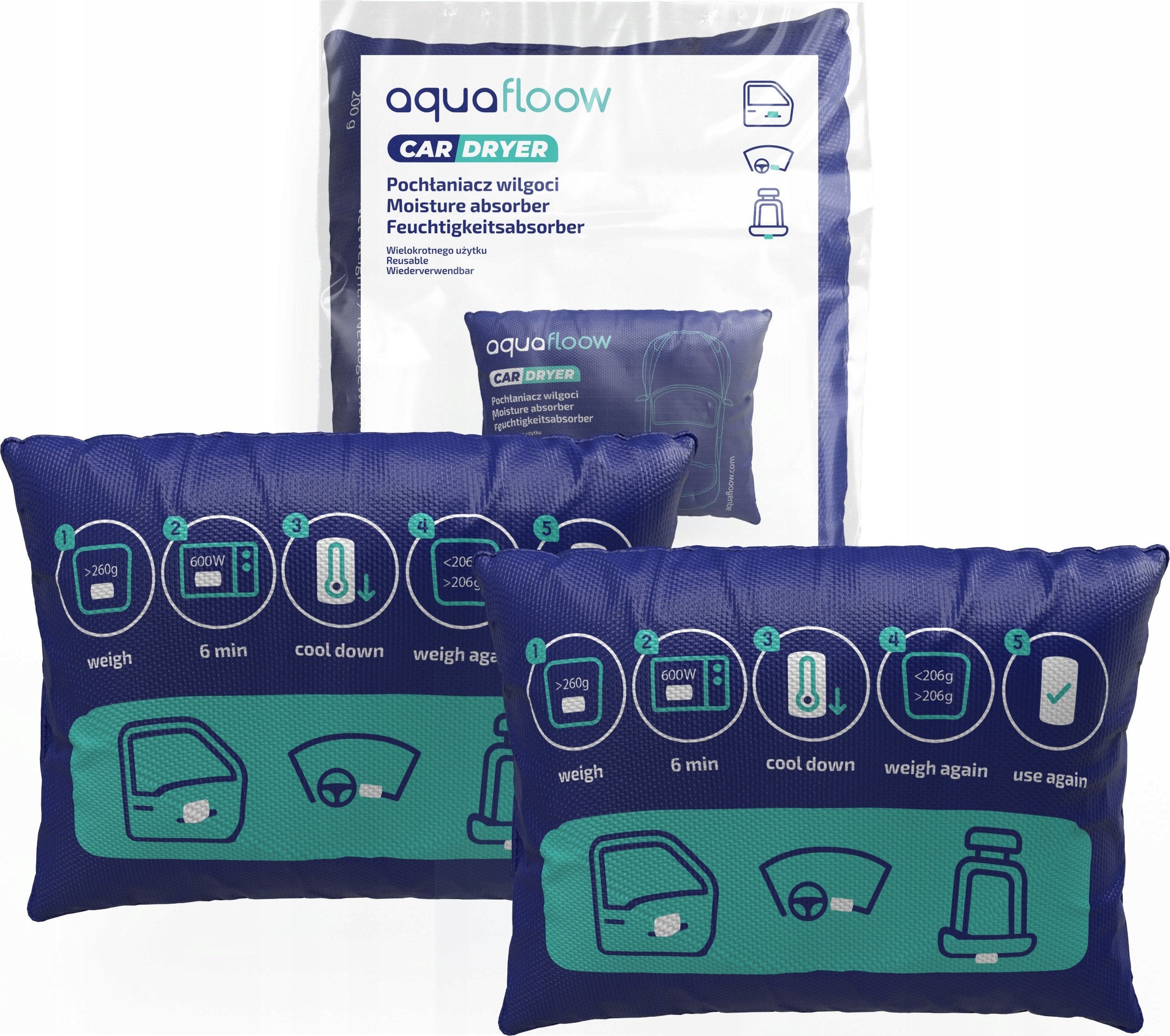 Aquafloow Déshumidificateur de Voiture Réutilisable 2 x 200g | Anti-Condensation pour Pare-Brise Dégagé | Absorbeur d'Humidité en Gel de Silice pour Armoire, Voiture, Chambre à Coucher