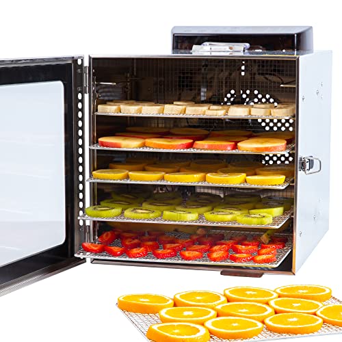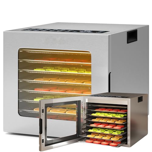 SJASD Deshydrateur Alimentaire en Acier Inoxydable,8 Plateaux, régulateur de température de 30 à 90 °C,Fonction minuterie de 24 h, déshydrateur pour Fruits viandes légumes