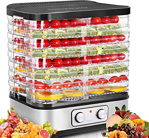 CMHYBS Deshydrateur Alimentaire avec 6 Plateaux en INOX Déshydrateur avec Minuterie 12h et Température 35-90°C -Deshydrateur Viande, Fruits, Champignons 400W Déshydrateur Alimentaire,6 Layers
