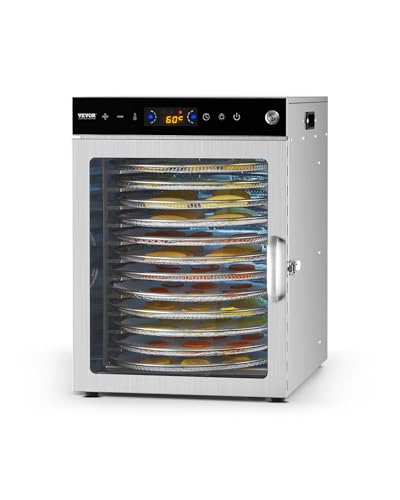 VEVOR Déshydrateur alimentaire rotatif, 12 plateaux en acier inox, séchoir électrique aliments 800 W, température réglable, minuterie 24 h, pour viande, fruits, légumes, herbes, friandises pour chiens