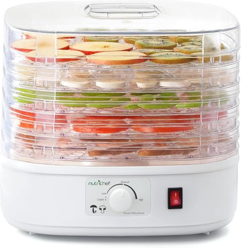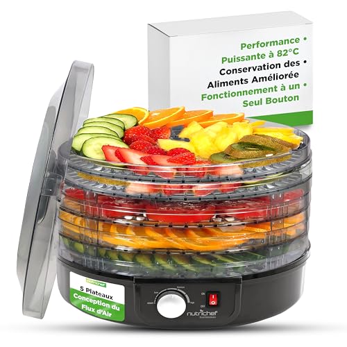 Nutrichef Déshydrateur Alimentaire 5 Niveaux | Déshydrateur pour Viande, Beef Jerky, Fruits, Légumes & Friandises pour Chiens | Circulation de Chaleur Haute Performance | Facile à Nettoyer à Domicile