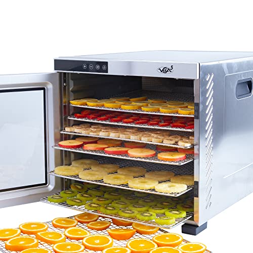 Vita5 Model S Deshydrateur Alimentaire avec 6 Plateaux - Déshydrateur avec Minuterie 24h et Température 30-90 °C - Deshydrateur Viande, Fruits, Champignons - 400W Déshydrateur Alimentaire Inox